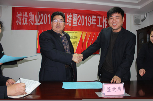 會(huì)議表彰了物業(yè)公司2018年度先進(jìn)班組和先進(jìn)個(gè)人,并完成了2019年度《經(jīng)營(yíng)目標(biāo)責(zé)任書(shū)》和《安全目標(biāo)責(zé)任書(shū)》的簽訂。