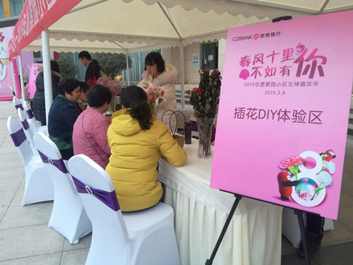3月8日下午,城投物業(yè)愿景園小區(qū)聯(lián)合浙商銀行開展“春風(fēng)十里•不如有你”主題女神嘉年華活動(dòng),為業(yè)主送去節(jié)日祝福。