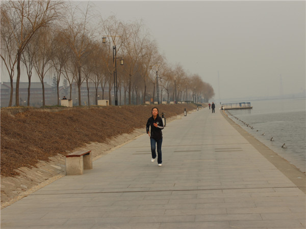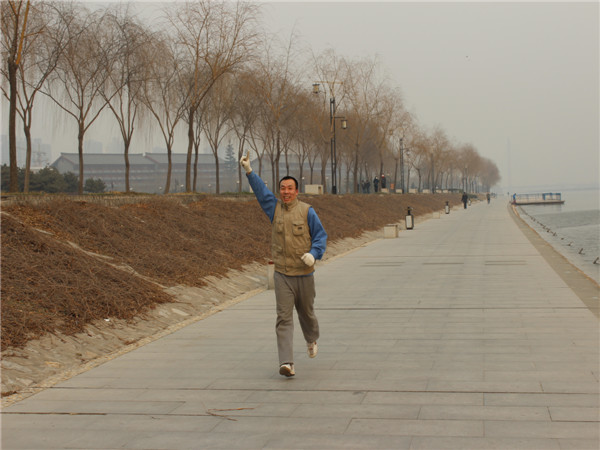 拔河比賽后全體隊(duì)員稍事調(diào)整后,如數(shù)參加了長跑比賽,賽程設(shè)置往返于統(tǒng)一大樓對應(yīng)的咸陽湖畔到二號橋。裁判一聲令下,隊(duì)員們爭先恐后的離開了起跑線,經(jīng)過四十分鐘左右的角逐,最終男子組張耀成、王威龍、董放放分獲前三名,女子組由李燕君、王幸、史秀娥奪得前三。
